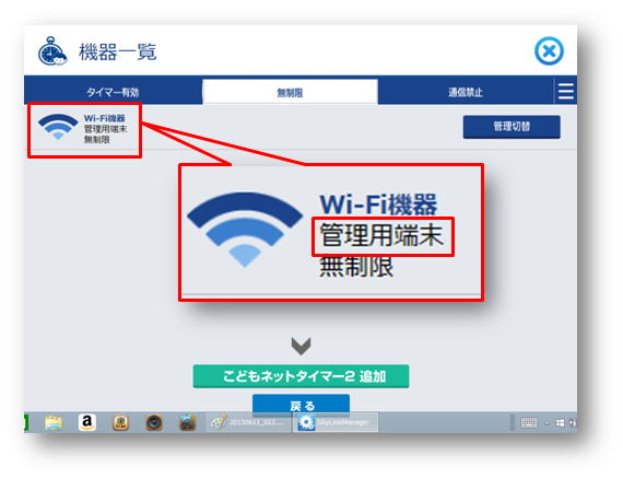「無制限」タブをクリックすると、子供の機器が追加されています。