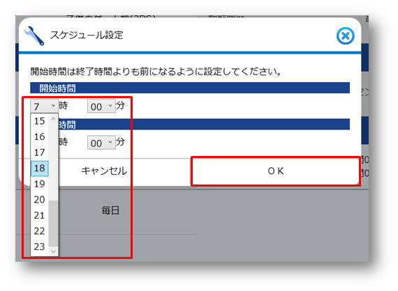 一日のうち、何時から何時の間繋げられるかを設定できます。