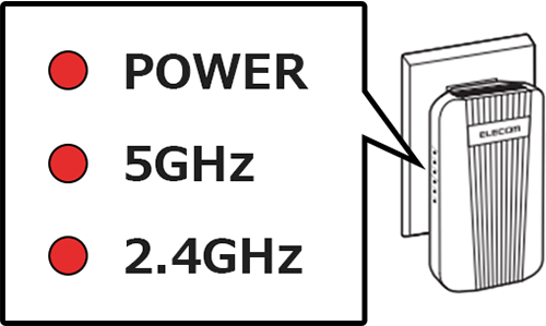 ①POWER、2.4GHz、5GHz ランプが高速で赤く点滅している